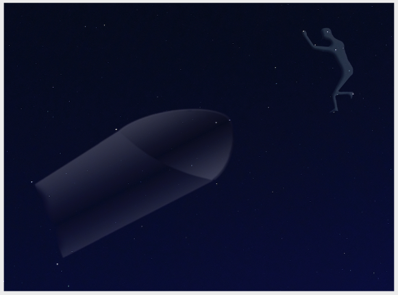 I’d been pondering the carpenter image for several years and badly needed it for an upcoming presentation. One cloudy night I happened to go outside; the sky was overcast but a small hole appeared revealing an even smaller group of three faint stars. Bingo! Unmistakably an elbow (at Star’s left tip) and at last I was on my way to understanding how the Moby-Dick carpenter symmetrically supplies the (star) constellation.