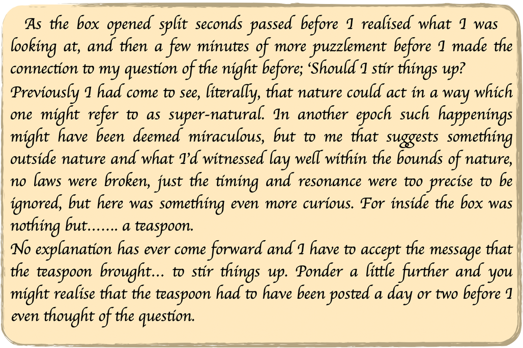 What follows is an account of how I met with, what might be termed, a Universal Force. I make no claims to understand this phenomenon and can’t say much about it except that it is likely to present itself uniquely, tailor-made for each and every one of us. For sure you’ve come across it but perhaps not recognised it for what it is. Hopefully this will help.